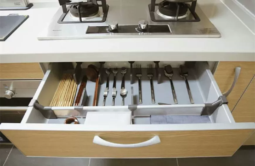 抽屉内部分隔隔板有很多种,一种是金属拉篮自带分隔,好清理又结实耐用,可以是首选。